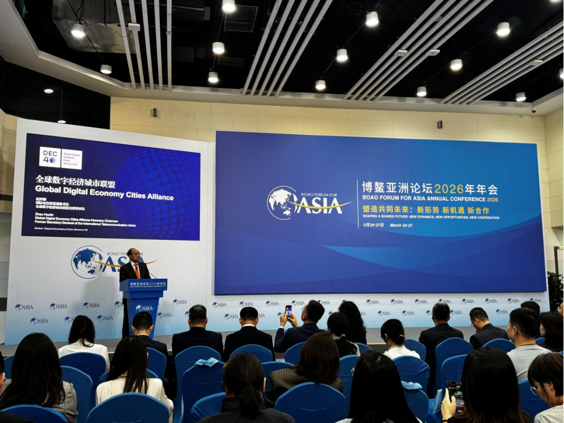 3月25日,博鳌亚洲论坛2026年年会“北京发布时刻”在博鳌新闻中心海鸥厅举行。全球数字经济城市联盟名誉理事长、国际电信联盟原秘书长赵厚麟受邀出席,并对全球数字经济城市联盟(DEC40)的核心工作进行推介。